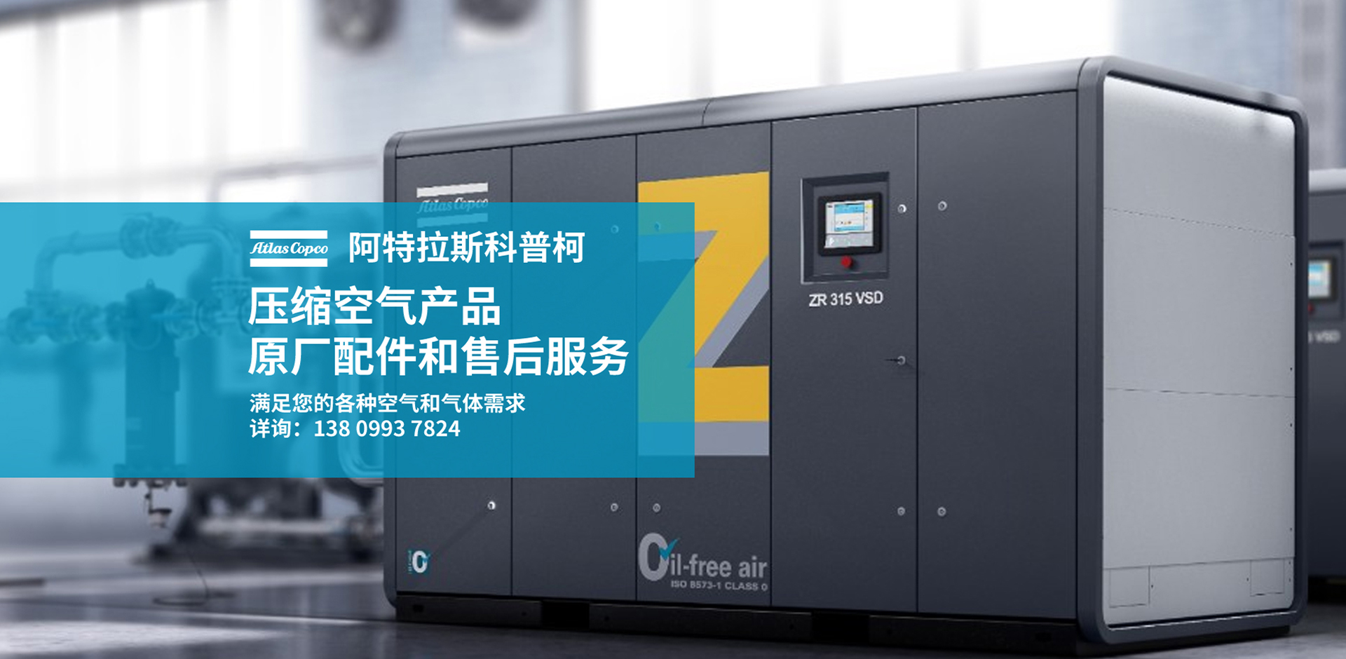 阿特拉斯·科普柯主机,压缩效率提高10% 先进进气阀系统 ,压力损失极低,高效节能 优质防尘电机,F级绝缘,安全运行