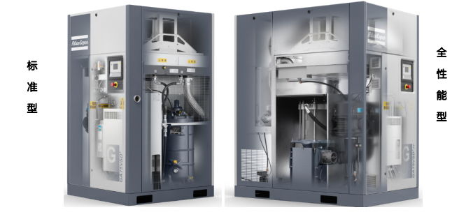 - FF 全性能机型:内置冷冻式干燥机,干燥空气,自动排除分离得冷却水