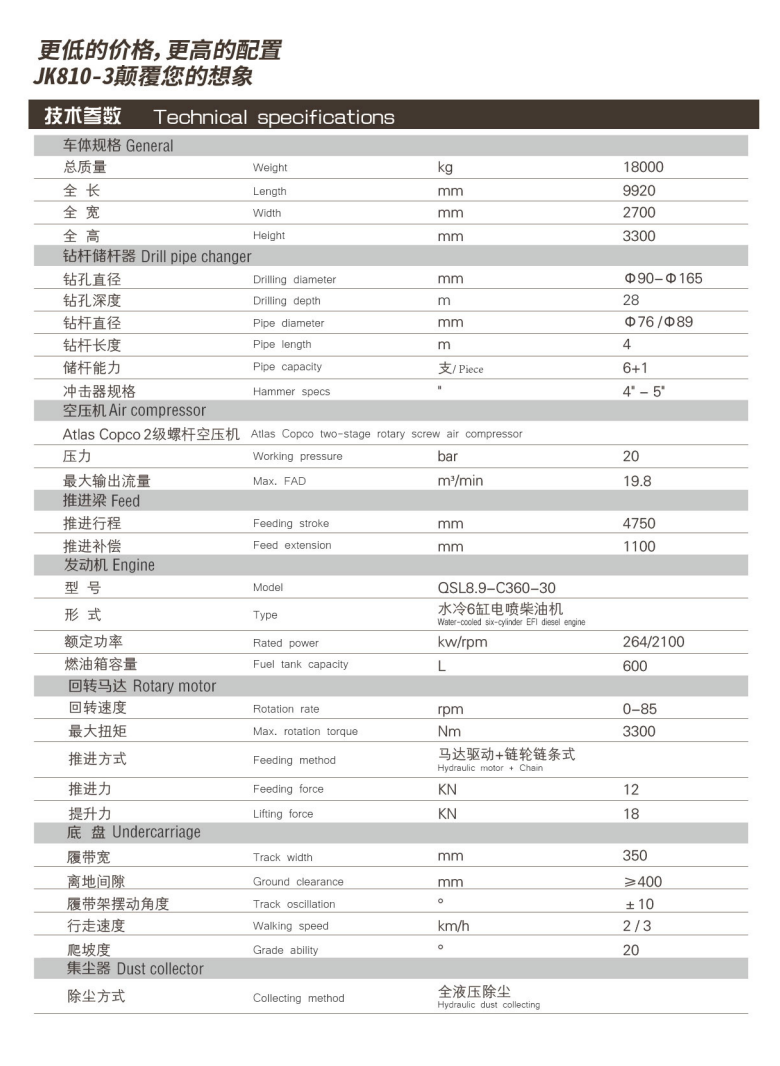 JK810-3一体式全液压潜孔钻机