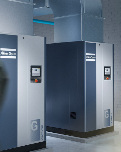 阿特拉斯·科普柯GA18-37VSD+系列为压缩机行业带来了巨大的变革,采用创新的直立设计方式。