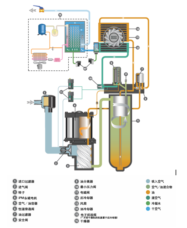 在标准的PACK机型上,没有干燥机,只配有一个排水阀在后冷却器上。